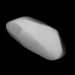 The asteroid's lightcurve has also been modeled several times. It gave a concurring period of 44.6768 and 44.677 hours, respectively.[10][11][lower-alpha 1] Modelling in the 2018-study also gave two spin axis of (127.0°, −43.0.0°) and (280.0°, −44.0°) in ecliptic coordinates (λ, β).[11]