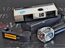 The last 110 film that Kodak produced was ISO 400 speed packed in a cartridge that senses as "low" speed.[6] As shown in the photograph to the right, these cartridges can be modified by hand so that they signal the proper speed to the camera.
