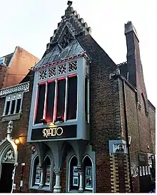 The school catered for working-class girls for more than 70 years, until about 1939. They were provided with a uniform of blue frocks with white cuffs and collars.[9] Changes to the provision of elementary education, brought about by the Education Act 1902 and the local education authority's opening of many new schools in the first decades of the 20th century,[15] reduced the school's importance, and by 1939 it had become a chapel under the name Refuge Church.[9] This use was brief; soon after World War II, the building was converted for commercial use, and several companies used it as offices.[9] Since 1969, when it became "Sloopy's Nitespot and Discotheque", the building has been used as a nightclub.[9] By 1990 it was operating as "Fozzie's Club";[16] it later became "The Sanctuary", "The Shrine", "Club New York" and "The Church"[17][18] before being renamed "New Hero"—the name it bore until its closure in 2011.[19] In January 2012, the owners of a nightclub in Worthing announced that they wanted to convert the building into the "House of the Lost"—a two-storey maze with a horror theme;[19] planning permission for this was granted in April 2012.[20] By 2014 the building was vacant again, and in October 2014 it was acquired by local lettings agency and theatre company founder Roger Kay. He announced plans to turn the building into a theatre.[21] A planning application for internal alterations appropriate to its new use, such as the formation of a mezzanine floor and the installation of a stage and box office, was submitted in November 2014.[22] It opened with the name Rialto Theatre on 4 December 2014 and provides a permanent home to Brighton companies Pretty Villain Productions and Unmasked Theatre. Rialto is firmly established as a multi-faceted entertainments venue and is particularly prominent at Brighton Fringe, the biggest arts festival in England, where many shows have received awards.