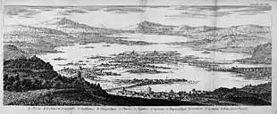 This earthquake left all the houses in the Valley of Mexico destroyed and caused considerable damage to the palaces and teocallis in the area. Several chinampas sank, the hills were washed away, crumbled and disintegrated, cracks were created in the earth and caused a Tsunami in Lake Texcoco.[5]