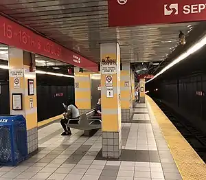 15–16th & Locust station is the western terminus of the PATCO Lindenwold Line in the Rittenhouse Square neighborhood of Philadelphia. The station has a single island platform, with a fare mezzanine above. The mezzanine level connects to the Center City Pedestrian Concourse, which connects subway and regional rail stations in the Center City area.