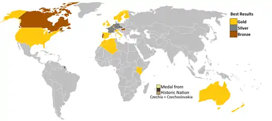 - nb The German total includes teams both competing as Germany and the United Team of Germany, but not East or West Germany.