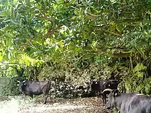 There are many huge boulders on the coasts of the Yaeyema and Miyako islands that are believed to have been deposited by tsunamis. There was a legend that an islet disappeared, but this has never been verified. This set of rocks are called the Ishigaki East Coast Tsunami Rocks.[8] Among them, Yasura-ufukane, Amatariya–Suuari and Taka-koru sishi have been dragged by the 1771 Meiwa tsunami.[9]