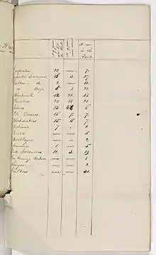 Hull's regulation was issued in response to complaints from the master mechanics about the loss of tools and other small items. A watch was set up, and not long afterward, on 27 July 1835, Anthony Sumners, a blacksmith striker in the anchor shop, was found hiding a copper spike in his lunch basket. Afterward, a search of Sumners' house revealed more missing government property. Sumners later explained that he stole the items to sell and support his large family. Sumners was subsequently arrested, tried, and convicted of theft of government property. Sumners was later pardoned by President Andrew Jackson based on his service in the War of 1812 and the recommendation of the jury.[38] When the workers found they no longer could carry even their own lunch into the yard, many viewed the order as nothing more than a presumption that they were all thieves. On Friday, 31 July 1835, when Francis Barry, the clerk of the roll, began reading the morning muster roll, a few men filed in to answer while their workmates stood nearby just outside the main Latrobe Gate yelling and urging them, "Don't answer! Don't answer!" Naval constructor William Doughty, a frequent critic of the commandant, denounced Hull's regulations telling the men Hull must "think them all rogues or thieves." Three-quarters of workers employed in August 1835, 175 of 231, left the yard and joined their colleagues on strike. According to Hull's figures, of the 175 workers who went on strike, 107 were still out on August 14, 1835. The most substantial group of holdouts remained the ship carpenters and their young apprentices, urged on by the inimitable William Doughty and his steadfast antipathy toward Hull.[39][40]