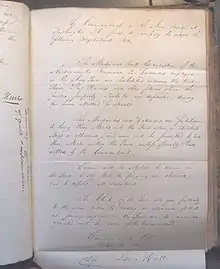 Commodore Isaac Hull left the Navy Yard in September 1835, never to return. However, the regulation regarding the workers' lunch restrictions remained in place, and the work hours continued the same until 1840.[68][69] For Navy Yard workers, the strike of 1835 revealed the weakness and tenuous nature of their bargaining situation. As day labor in a protracted dispute, absent effective organization and financial resources, they inevitably suffered. Most of all, the strike revealed the corrosive effects of racism on the workforce as white workers sought to blame their precarious economic situation on free and enslaved African Americans. Further, the strike left as part of its legacy a deep and abiding racial mistrust, which would linger.[70] For the next century, the history of the Washington Navy Yard strike of 1835 and Snow race riot remained an embarrassment to be glossed over and disassociated from the District of Columbia and Washington Navy Yard's official histories.[71][72] Historical understanding of the strike has improved with the transcription and publication of important documents such as the correspondence of Isaac Hull and the Diary of Michael Shiner. Prior to the 2007 publication of the complete Michael Shiner diary, one historian, for example, actually described the strike as an example of early inter-racial worker solidarity. "In a number of instances, however, Negro and white workers [at the WNY] worked and went on strike together. Thus white carpenters and caulkers and Negro caulkers employed in the navy yard in Washington joined in a strike in July 1835."[73] Alternately, another historian has argued that the 1835 participants in the riot "were mostly mechanics" and "mostly Irish".[74] More recent scholarship on Michael Shiner and Isaac Hull has focused on the participation of the 1835 Navy Yard strikers in the riot as noted in the letters of Josephine Seaton and correspondence of Isaac Hull.[75][76][77]