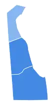 With 59% of the popular vote, Delaware would prove to be Seymour's fifth strongest state in terms of popular vote percentage after Kentucky, Louisiana, Maryland and Georgia.[1]