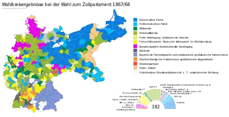 85 of the 382 seats in the Zollparlament 192 seats needed for a majority | |||||||||||||||||||||||||||||||||||||||||||||||||||||||||||||