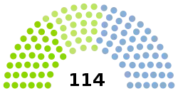 All 114 seats in the Norwegian Parliament 57 seats were needed for a majority | |||||||||||||||||||||||||||||||||