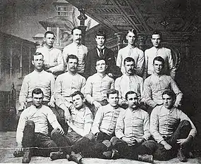 The 1889 Purdue football team was an American football team that represented Purdue University as an independent during the 1889 college football season. The team compiled a 2–1 record in the university's second season fielding an intercollegiate football team. Archaeologist and Harvard alumnus, George Andrew Reisner, was the team's coach. The team opened its season on November 16 with a 34–10 victory over DePauw for the first victory in Purdue football history and the first game played in Lafayette, Indiana. Purdue defeatedWabash the following week, 18–4, and concluded its season on November 29 with a 14–0 loss against Butler.[1][2] J. M. Sholl was the team captain.[2]