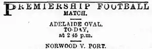 As such, this match between Norwood and Port Adelaide was the first ever fixture in the SAFA's history to decide the premiership.[2]