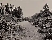 The Nōbi earthquake (濃尾地震, Nōbi Jishin) struck the Japanese provinces of Mino and Owari (present-day Gifu Prefecture) in the Nōbi Plain in the early morning of October 28 with a surface wave magnitude of 8.0 and a moment magnitude of 7.5. The event, also referred to as the 1891 Mino–Owari earthquake (美濃・尾張地震, Mino-Owari Jishin), the Great Gifu earthquake (岐阜大地震, Gifu Daijishin), or the Great Nōbi earthquake (濃尾大地震, Nōbi Daijishin), is the largest known inland earthquake to have occurred in the Japanese archipelago.