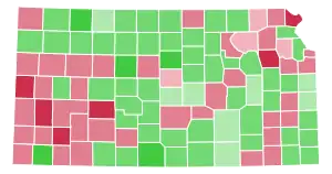 | Wabaunsee | 1,356 | 46.82% | 1,520 | 52.49% | 20 | 0.69% | -164 | -5.67% | 2,896 |