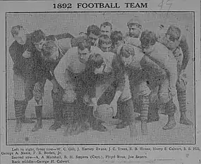 The Western University of Pennsylvania Athletic Association, with halfback William Gill as president, set up a seven-game schedule for the 1892 football season.[9]The team, led by captain Bert Smyers, compiled a 4–2 record and was outscored by a total of 46 to 38.[10]