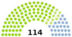 All 114 seats in the Norwegian Parliament 57 seats were needed for a majority | |||||||||||||||||||||||||||||||||