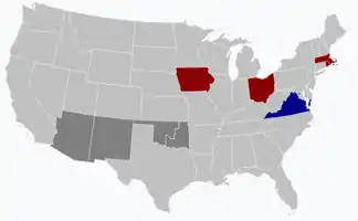 Virginia holds its gubernatorial elections in odd numbered years, every 4 years, following the United States presidential election year. Massachusetts and Rhode Island at this time held gubernatorial elections every year, which they would abandon in 1920 and 1912, respectively. Iowa and Ohio at this time held gubernatorial elections in every odd numbered year.