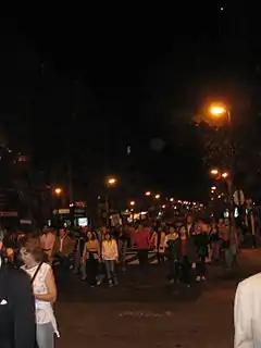 Many groups met at 19:00 at several points of Buenos Aires, marching to the Obelisk and Plaza de Mayo at 20:00. The demonstration included no speeches or orators, and the political parties that joined it did not use political flags or banners.[8] The people marched then to the Argentine National Congress, which was still discussing the bill. A group of people managed to trespass the crowd control barriers and get to the entry of the Congress, by the time the bill was being approved.[9]