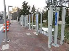 18th & Crystal is a northbound-only bus rapid transit station in Arlington, Virginia, located near the intersection of 18th Street South and Crystal Drive. The stop is on a mixed-traffic segment of the Metroway that is restricted to buses during certain hours. It provides service along the route to northern Crystal City.