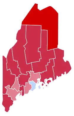 | Aroostook | 4,192 | 76.07% | 1,030 | 18.69% | 280 | 5.08% | 9 | 0.16% | 3,162 | 57.38% | 5,511 |