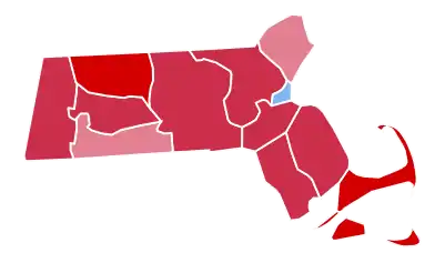 McKinley was able to win 13 out of the 14 counties in the state of Massachusetts. The only county that went to Bryan was Suffolk County, home to the state's capital and largest city, Boston. Bryan had previously lost the county to McKinley in 1896 and would lose it again to William Howard Taft in 1908.