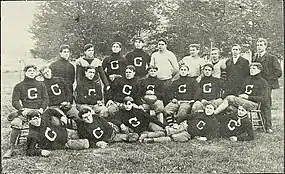 A contemporary account reads "The Clemson players seemed mere dwarfs as they lined up for the kickoff. To the crowd on the sidelines it didn't seem that Heisman's charges could possibly do more than give a gallant account of themselves in a losing battle."[19] A touchdown was scored by fullback E. L. Minton (touchdowns were worth 5 points).[20] Guard M. O. Bridges kicked the extra point. Halfback J. A. Head made another touchdown, but Bridges missed the try.