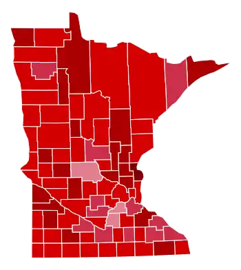 Roosevelt carried all of Minnesota's counties, becoming the first Republican presidential candidate to do so. No Republican would sweep all of the state's counties again until Warren G. Harding in 1920. In addition, with 73.98% of the popular vote, Minnesota would be Roosevelt's third strongest victory in terms of percentage in the popular vote after Vermont and North Dakota.[1]