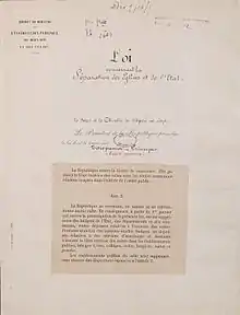 ![]() Loi du 9 décembre 1905 concernant la séparation des Églises et de l'État | |
