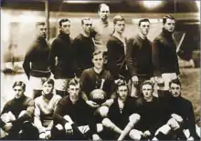 The 1907–08 season saw the third coach in three years take the reins at the University of Illinois. Fletcher Lane was Illinois’ third coach, but lasted just one season. Even though he led his team to a 20–6 record, the university, as well as the athletes, deemed Lane's coaching style as subpar.[1] Lane's team benefited from a long Southern trip in which the team beat several YMCA and club teams from Tennessee, Texas, Alabama, and Georgia. The starting lineup consisted of forwards Albert Penn and H. J. Popperfuss, center Avery Brundage, and guards Thomas E. Thompson and captain M. G. Dadant.[2]