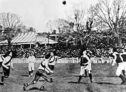 The 1907 VFL Grand Final, originally known as the 1907 VFL Final, was an Australian rules football game contested between the Carlton Football Club and South Melbourne Football Club, held at the Melbourne Cricket Ground in Melbourne on 21 September 1907.[1] It was the 10th Grand Final of the Victorian Football League, and determined the premiers for the 1907 VFL season.