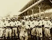 The 1908 Chicago Cubs season was the 37th season of the Chicago Cubs franchise, the 33rd in the National League, and the 16th at West Side Park. It involved the Cubs winning their 3rd consecutive National League pennant, as well as the World Series. This team included four future Hall of Famers: manager / first baseman Frank Chance, second baseman Johnny Evers, shortstop Joe Tinker, and pitcher Mordecai Brown. In 1908, Brown finished second in the NL in wins and earned run average. This would be the last World Series victory for the Cubs until the 2016 World Series.