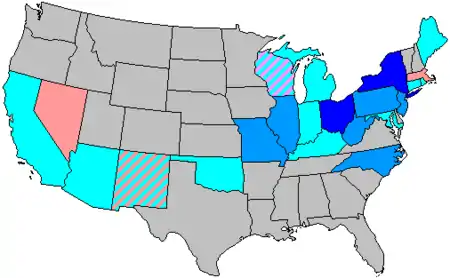| New York | Districts | 37 | 22 | 15[lower-alpha 11] | 0 | |||