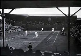 The 1910 Wimbledon Championships took place on the outdoor grass courts at the All England Lawn Tennis and Croquet Club in Wimbledon, London, United Kingdom. The tournament ran from 20 June until 30 June.[1] It was the 34th staging of the Wimbledon Championships, and the second Grand Slam tennis event of 1910.
