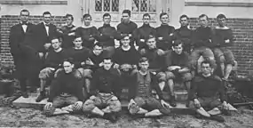 The starting lineup was Swanson (left end), Coarsey (left tackle), Lawler (left guard), Storter (center), Hancock (right guard), Bullock (right tackle), Buie (right end), Shackleford (quarterback), Davis (left halfback), Taylor (right halfback), Tenney (fullback).[8]