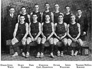 The 1912–13 season saw yet another head coach arrive in Champaign-Urbana to work with the Illinois Fighting Illini men's basketball team. Ralph Jones left an impressive legacy behind in West Lafayette, Indiana where he was head coach of Purdue for three years. During his tenure at Purdue, Jones compiled an impressive record of 32 wins with only 9 losses resulting in two conference championships. Jones was credited by some with originating the fast break in basketball.[1] After leading the Fighting Illini to two additional conference championships and one national championship, Jones left to coach at Lake Forest Academy. In addition to coaching basketball, Jones was head coach of the Chicago Bears from 1930–33, where, among other achievements, he was credited with the revival of the T-formation and the use of a man in motion to throw off the defense.[2]