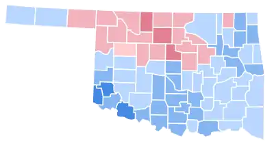 | Nowata | 1,012 | 44.56% | 1,087 | 47.86% | 146 | 6.43% | 26 | 1.14% | -75 | -3.30% | 2,271 |
