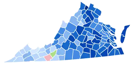 | Roanoke County | 696 | 68.30% | 108 | 10.60% | 191 | 18.74% | 9 | 0.88% | 15 | 1.47% | 0 | 0.00% | 505[lower-alpha 1] | 49.56% | 1,019 |