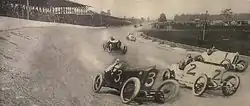 Composite image showing the front row at the start of the 1915 Indianapolis 500.