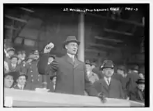 Opening day was April 14, 1915, at the Polo Grounds against the Brooklyn Dodgers with 20,000 attendees. Mayor John Purroy Mitchel threw the ceremonial first pitch. The New York Giants Opening Day starting pitcher was Jeff Tesreau. The Giants won 16 to 3.[1]