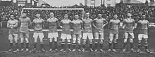 Brentford entered the London Combination for the fourth consecutive season in 1918–19, for what would become the final campaign of wartime football during the First World War.[1] Just 11 contracted players would be available throughout the course of the season, which necessitated the use of a large number of guest players, the most notable of whom being future internationals Jackie Carr, Jack Cock and Fred Bullock (England), Fred Keenor (Wales) and Jack Doran (Ireland).[2] Cock, Henry White and Ted Hanney all played in an England trial match on 14 April 1919.[3]