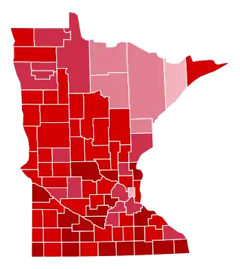 Harding became the second and last presidential nominee after Theodore Roosevelt in 1904 to sweep all Minnesota’s counties. This was the last time the Republicans won Red Lake County until George W. Bush in 2000[12] and the last time Mahnomen County voted Republican until Ronald Reagan in 1980.[13]