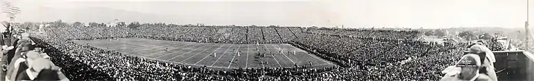 The 1921 Rose Bowl, known at the time as the Tournament East-West Football Game, was a college football bowl game played on January 1, 1921 at Tournament Park in Pasadena, California. It was the seventh Rose Bowl Game. The California Golden Bears defeated the Ohio State Buckeyes by a score of 28–0 in the second Big Ten Conference versus Pacific Coast Conference (PCC) meeting in a Rose Bowl, the first being the 1902 Rose Bowl, which featured Michigan and Stanford. California's victory stood as the only Rose Bowl win for a PCC team over a Big Ten team until the 1953 Rose Bowl.[1]