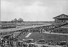 Motor-racing was strong in Italy, but street races were difficult to organise and not profitable. The Milan Automobile club followed the example in Britain (Brooklands), the USA (Indianapolis) and Germany (AVUS)– to establish a closed circuit. They purchased a 30-year lease on a portion of the Monza Park, northeast of the city, which had just been bequeathed to the state by the king.[27] An innovative design, combining a paved racing oval and a road circuit (exactly 10 km in total length), was laid out. The first sods of dirt were turned in a formal ceremony on February 26 by Italian racing heroes Felice Nazzaro and Vincenzo Lancia.[28][29][30] Controversy started immediately and the Italian Minister of Education put a stop to work. The second Italian Grand Prix was scheduled for September, so after protracted negotiations when construction resumed in May, it had to be completed in exactly 100 days.[31][28]