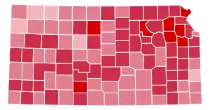 | Wabaunsee | 2,742 | 65.90% | 633 | 15.21% | 786 | 18.89% | 1,956[lower-alpha 1] | 47.01% | 4,161 |