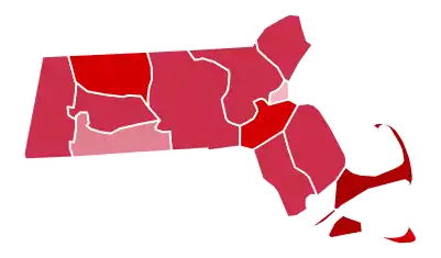 Coolidge swept every county in the state of Massachusetts, and his 65.34% of the popular vote would prove to be his fifth strongest state in the 1924 election in terms of popular vote percentage after neighboring Vermont, Michigan, Maine and Pennsylvania.[3] To date, this is the last time a Republican presidential candidate has carried every county in Massachusetts as well as the last election in which a Republican presidential candidate has won Suffolk County, home to the state's capital and largest city, Boston. No Republican has reached 60% of the vote since. [4] It is also the last time that the towns of Hadley and Hatfield and the cities of Boston, Cambridge, Chelsea, Chicopee, Fall River, Lawrence, and Revere voted Republican. From his time as governor, Coolidge remained relatively popular, for a Republican, among Irish Catholics and the other ethnic immigrant groups who populated Boston. Many of these voters would defect to the Democrats for Catholic Al Smith in 1928 and become reliable Democratic voters after that, making Boston a reliably Democratic city in every election that followed.