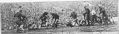 After a bitterly fought first quarter, Jones netted 27-yard and 40-yard field goals for a 6–0 lead at the half. Jones ran off tackle for the game's only touchdown. Some 20,000 were in attendance.[29]