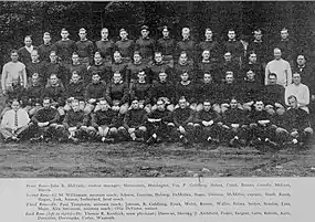 With the team back in school, practice was held in the stadium so the 75 freshmen team aspirants could use the practice field. At the stadium, the day before the first game against Allegheny College, Coach Sutherland allowed the student body to watch practice for the first time.[20]