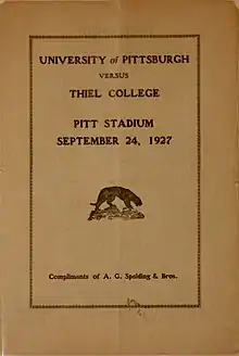 - "Footballers Smother Thiel In Opening Contest". The Pitt Weekly. Vol. 19, no. 1. September 28, 1927. p. 6. Retrieved June 25, 2021.