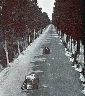 The Royal Rome GP was raced on a new 13 km road circuit on the southern outskirts of the city. A round of the Italian Championship, it attracted many of the top drivers. Nuvolari, Chiron, Brilli Peri, Minoia and Foresti represented Bugatti, in various guises. Maserati had six cars, including a works entry for Ernesto Maserati while Borzacchini drove as relief for Cesare Pastore with his new car. Materassi had Talbots for himself and Giuseppe Morandi, while Varzi and Aymini ran 1925 Delages. Finally, Amilcar arrived with a 3-car works team to contest the 1.1-litre voiturette class and 23 cars took the grid. Brilli Peri took the lead from the start and he, Chiron and Nuvolari broke away from the rest. They duelled for the first half of the race with Chiron on getting into the lead on the 13th lap. After the half-time pitstops, Chiron held a 1-minute lead over Brilli-Per, with Materassi and Minoia over six minutes behind. The rest of the race was fairly pedestrian, and after 30 laps Chiron won by four minutes from Brilli Peri, then Materassi and Minoia. Luigi Fagioli was the best-finishing Maserati, in fifth.[64] A fortnight later, at the extremely fast Cremona track, Materassi's newest team-mate Luigi Arcangeli won an exciting victory for the Talbot team, by narrowly beating Nuvolari in a race of attrition where only four of the nineteen starters finished.[65]