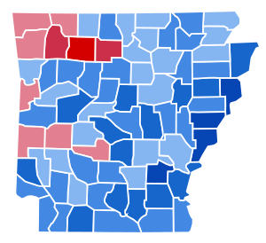 | Arkansas | 1,491 | 58.59% | 1,046 | 41.10% | 8 | 0.31% | 445 | 17.49% | 2,545 |