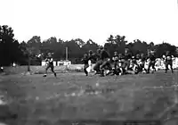 An account of Bobby Dodd's trickery: "Against Florida in 1930 he got his teammates in a huddle and told them about a play he had used in high school. When the ball was snapped, it was placed on the ground unattended. The players ran in one direction. Then the center returned, picked up the ball, and waltzed to the winning touchdown."[35] This play would later come to be popularly known as the "fumblerooski", after Nebraska famously used it in the 1984 Orange Bowl versus Miami.[36][37]