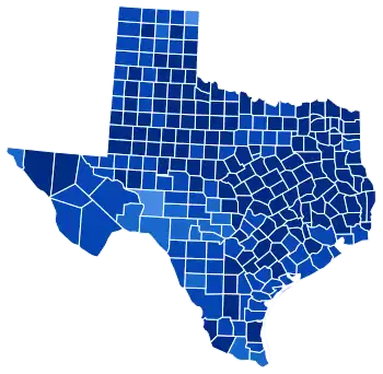 Roosevelt defeated Hoover in the Lone Star State by a landslide margin of 76.71%. To date, this is the largest blowout victory by any major party presidential nominee in the state, and marks only one of two times following the GOP's creation that Kendall County failed to back their candidate. This is the only time that any presidential candidate has won every single county in the state.